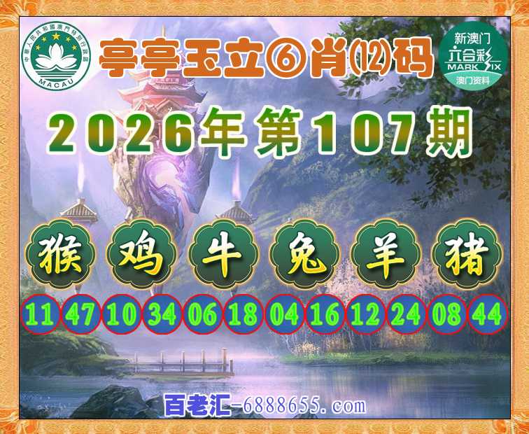 107期:【亭亭玉立】 🏵️⑥肖⑿码🏵️【猴鸡牛兔羊猪】开:00准