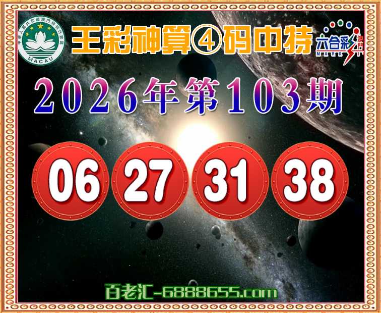103期:《王彩神算》 💄④码中特💄【06.27.31.38】开:06