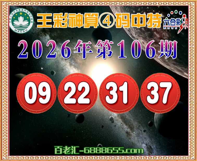 106期:《王彩神算》 💄④码中特💄【09.22.31.37】开:22
