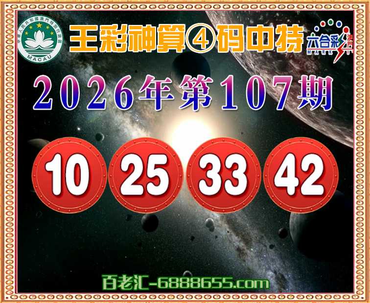 107期:《王彩神算》 💄④码中特💄【10.25.33.42】开:00准